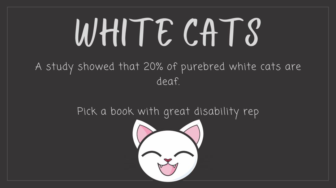 As I do not have personal experience with disabilities I feel like it would be disingenuous for me to choose a book with great disability rep. I know of books that have disability rep but I am not the one to tell you if the rep is great or not.